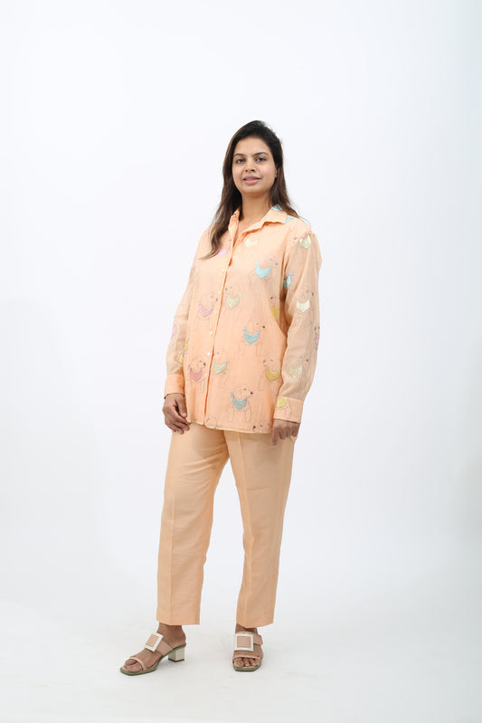 Peach Deer Print Embroidered Cord Set